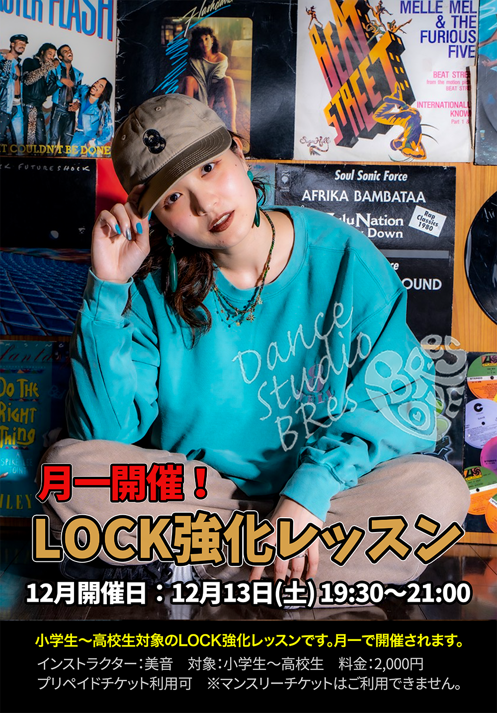 美音先生担当の小学生~高校生限定LOCK強化レッスン、12月は12/13開講です!