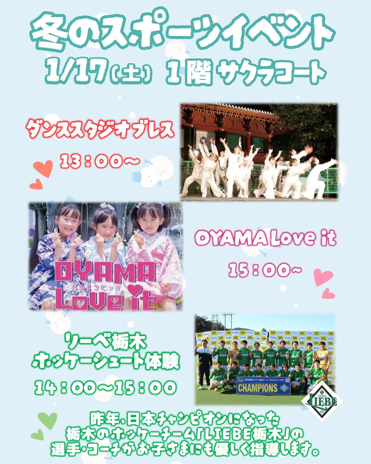 明日、1月17日(土)イオンモール小山店の「冬のスポーツ・イベント」にてBResメンバーが踊ります🎶
